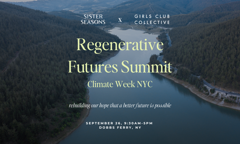 Escape the city with Sister Seasons and Girls Club Collective for The Regenerative Futures Summit, a full-day, community-filled visioning and skill-building gathering for feminist impact and ESG leaders, entrepreneurs, activists, and academics who are working to spark systemic change.